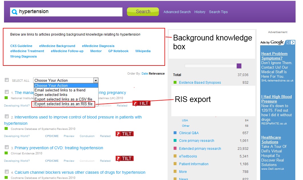 RIS is the file format for reference management software and we’ve been asked on a number of occasions if TRIP can support this format. In other words, allow users to select search results in TRIP and export them – via RIS – into their reference management software package. We’re delighted to say this has now been released and users can select it via the drop-down menu at the top of the search results (see image below – click to make bigger). NOTE: TRIP does not have access to all meta-data so the export will be for partial results only.