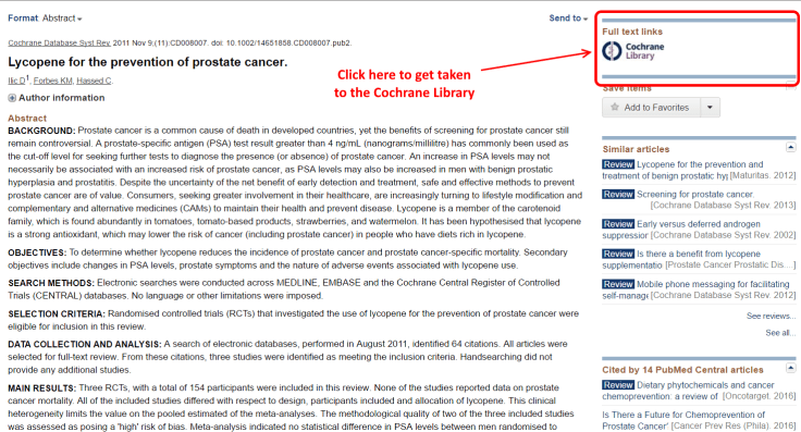 For those of you who miss the direct links to the Cochrane Library, you can still easily get there via PubMed: