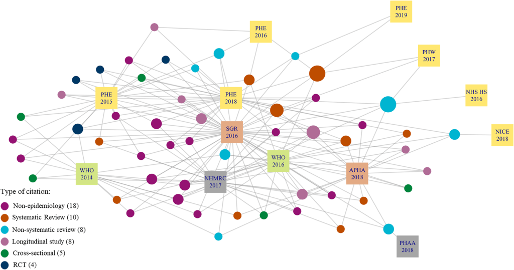 Citations: Articles typically list a bunch of references – so the article is citing these. And any article can itself be cited. So, you have forward and backward citations. Again, these have been shown as connections and mapped, e.g (source):