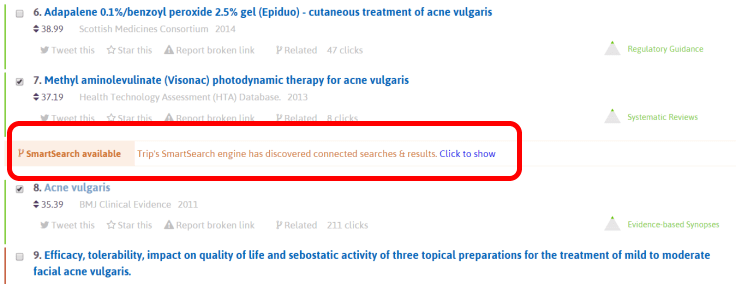 Individual articles: Each article within Trip could feature other connected articles be it co-clicks, semantic similarity or citations. It could be that we create a badge (thinking of the Altmetric Donut) that helps indicate to users how many connections there might be.
