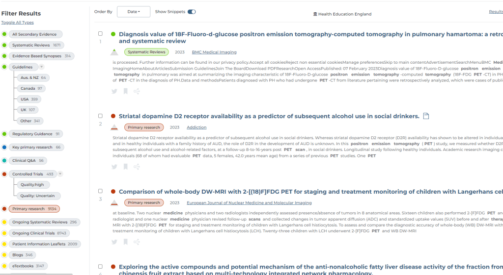 - Mis-classified results – linked to the above, some articles were appearing in the wrong filter. So, a user might select a ‘guideline’ and be shown a ‘systematic review’! [Work starting next week]