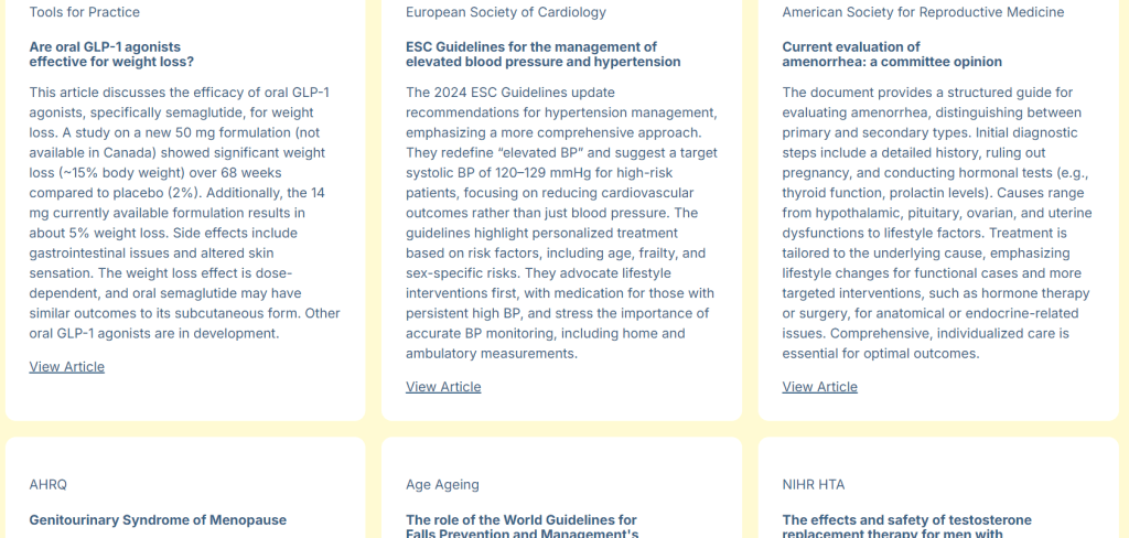 Note the ‘September 2024’ which indicates it’ll be monthly. On the left hand side is an ‘editorial’ (LLM generated) and on the right is a list of articles we’re covering. If you scrolled down further you get: