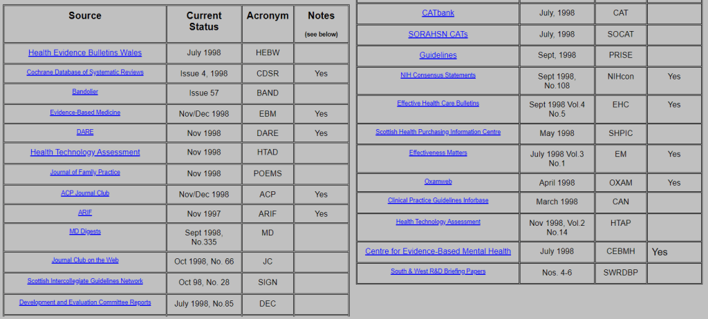 I like this comparison, but I wonder if it would be more meaningful to compare TRIP with a PubMed Clinical Queries search (Clinical Queries – PubMed). I still think TRIP would “win” because of your emphasis on the evidence hierarchy, inclusion of SRs and EB guidelines, but I think it would be a more refined comparison.
