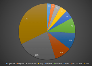 Below is a pie chart showing the country of origin of every personal subscriber to Trip.
